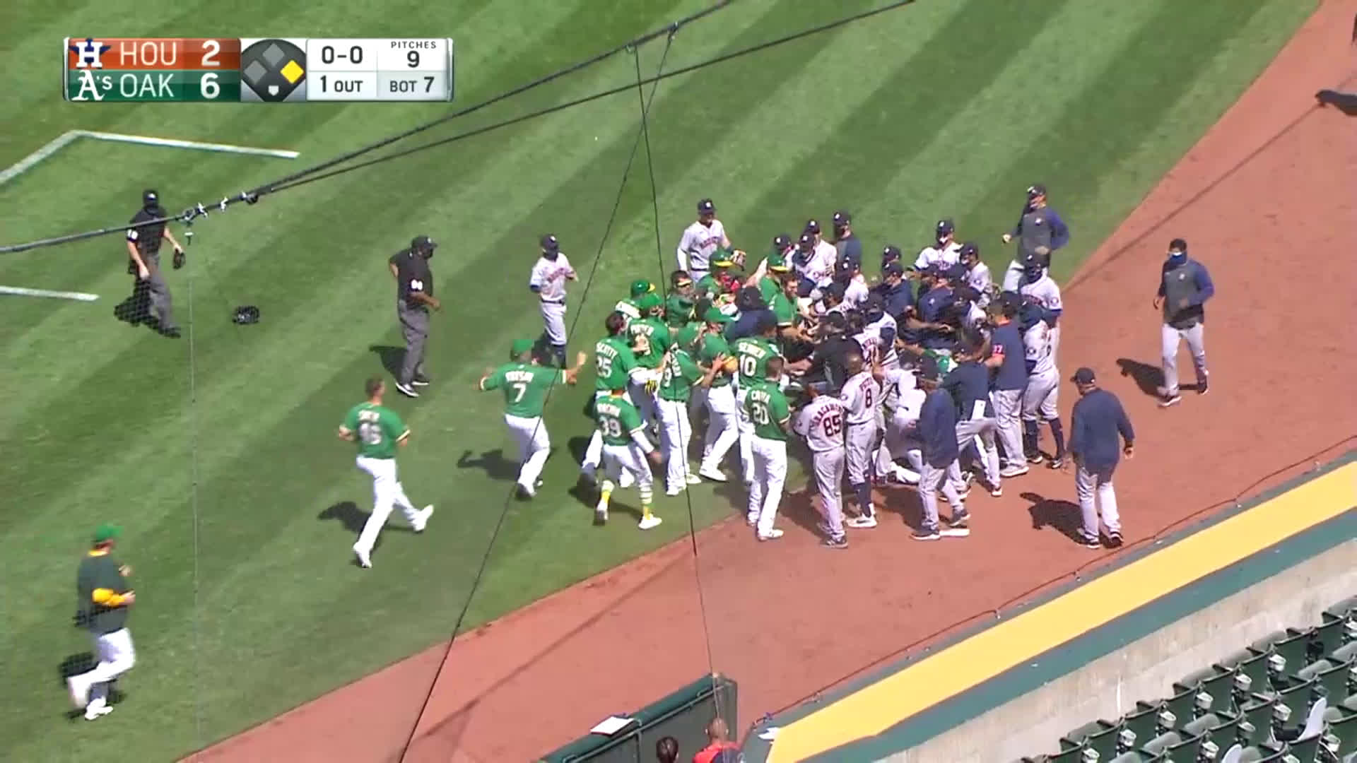 Benches clear in Astros vs. A's game.