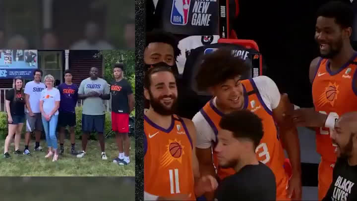 Suns' Players get introduced by their family members before the game